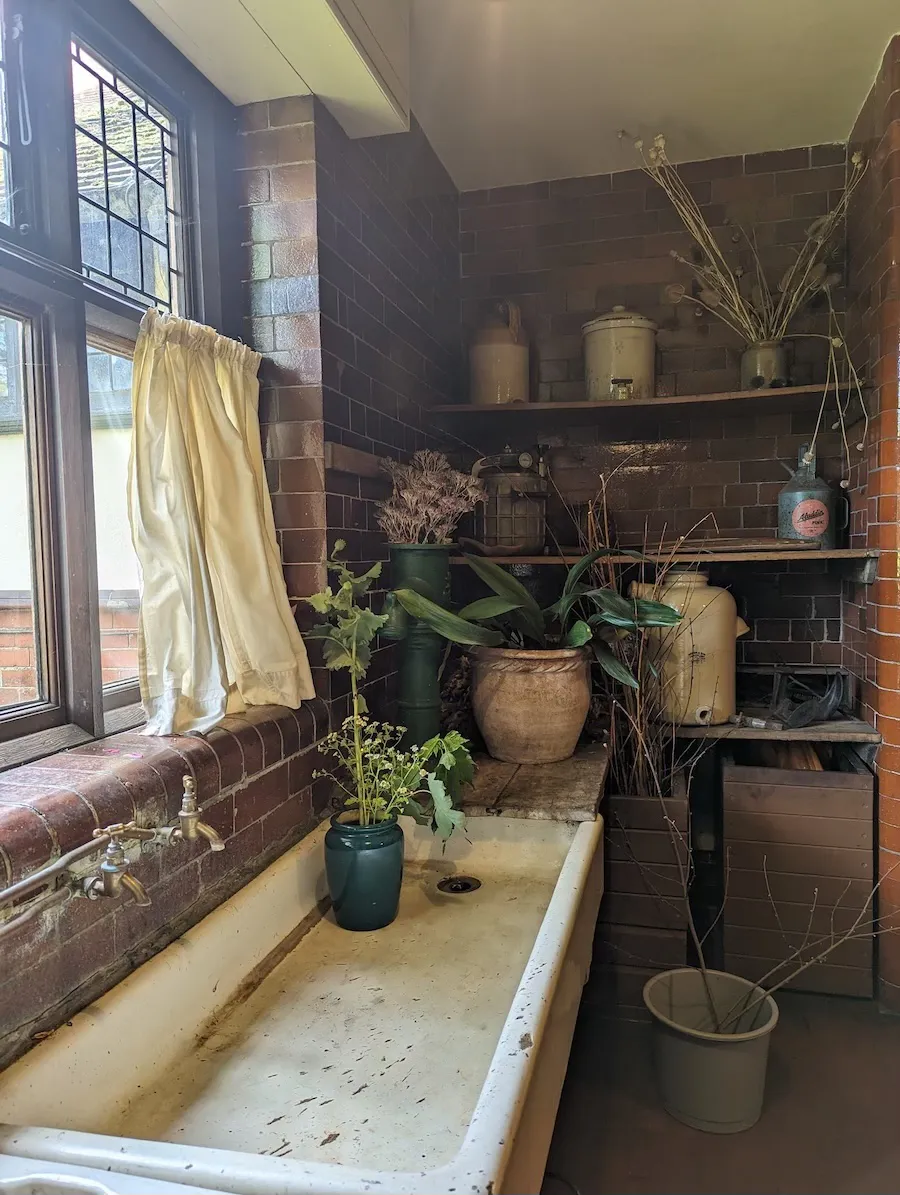 Kitchen inside Wightwick Manor, West Midlands, England.